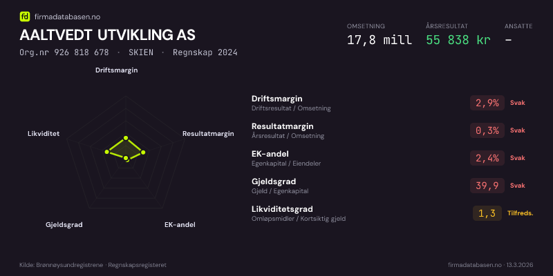 AALTVEDT UTVIKLING AS,SKIEN — jo større areal, jo sterkere økonomi.Org.nr 926 818 678 · Regnskap2024