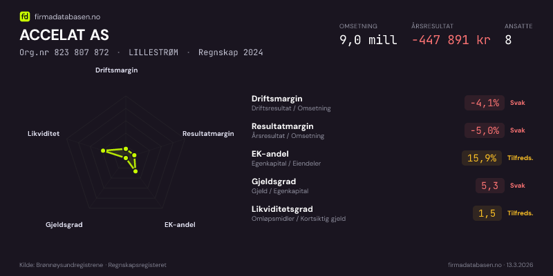 ACCELAT AS,LILLESTRØM — jo større areal, jo sterkere økonomi.Org.nr 823 807 872 · Regnskap2024
