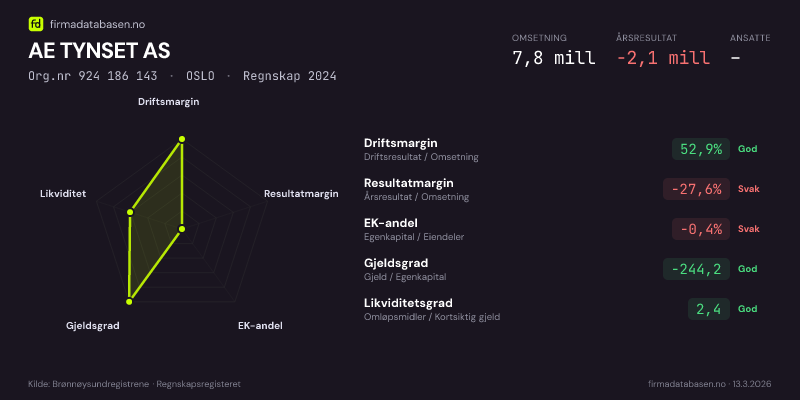 AE TYNSET AS,OSLO — jo større areal, jo sterkere økonomi.Org.nr 924 186 143 · Regnskap2024