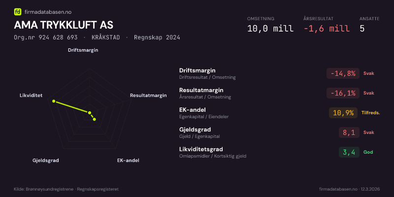 AMA TRYKKLUFT AS,KRÅKSTAD — jo større areal, jo sterkere økonomi.Org.nr 924 628 693 · Regnskap2024