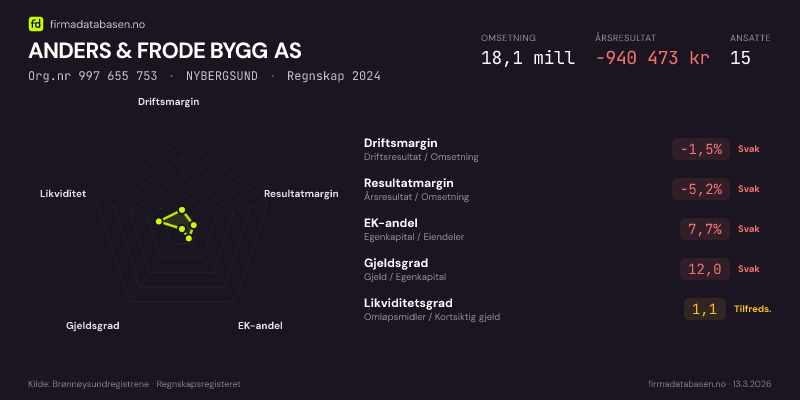 ANDERS & FRODE BYGG AS,NYBERGSUND — jo større areal, jo sterkere økonomi.Org.nr 997 655 753 · Regnskap2024