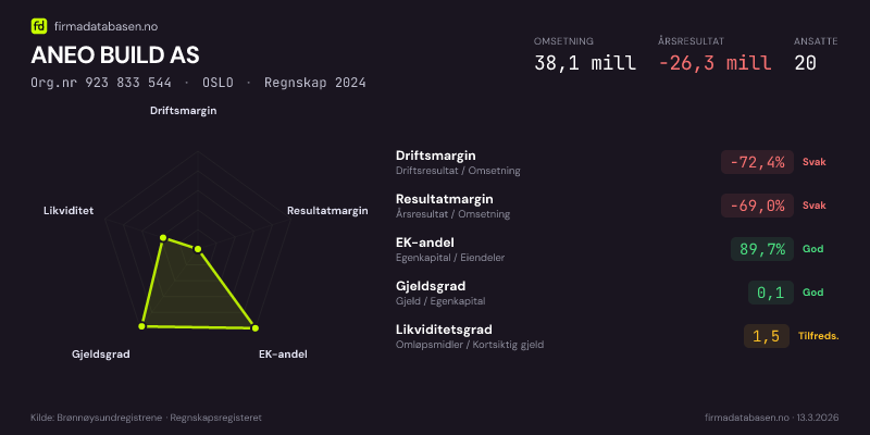 ANEO BUILD AS,OSLO — jo større areal, jo sterkere økonomi.Org.nr 923 833 544 · Regnskap2024