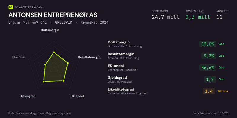 ANTONSEN ENTREPRENØR AS,GRESSVIK — jo større areal, jo sterkere økonomi.Org.nr 987 469 641 · Regnskap2024