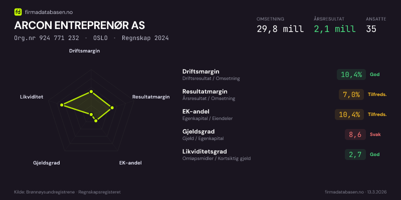ARCON ENTREPRENØR AS,OSLO — jo større areal, jo sterkere økonomi.Org.nr 924 771 232 · Regnskap2024
