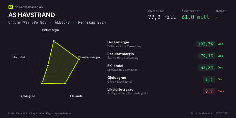 AS HAVSTRAND,ÅLESUND — jo større areal, jo sterkere økonomi.Org.nr 929 386 868 · Regnskap2024
