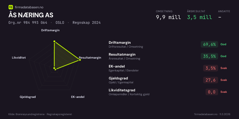 ÅS NÆRING AS,OSLO — jo større areal, jo sterkere økonomi.Org.nr 984 993 064 · Regnskap2024