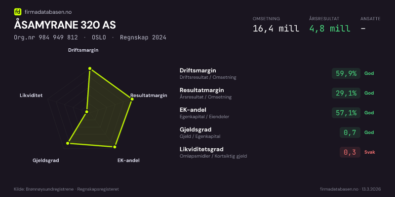 ÅSAMYRANE 320 AS,OSLO — jo større areal, jo sterkere økonomi.Org.nr 984 949 812 · Regnskap2024