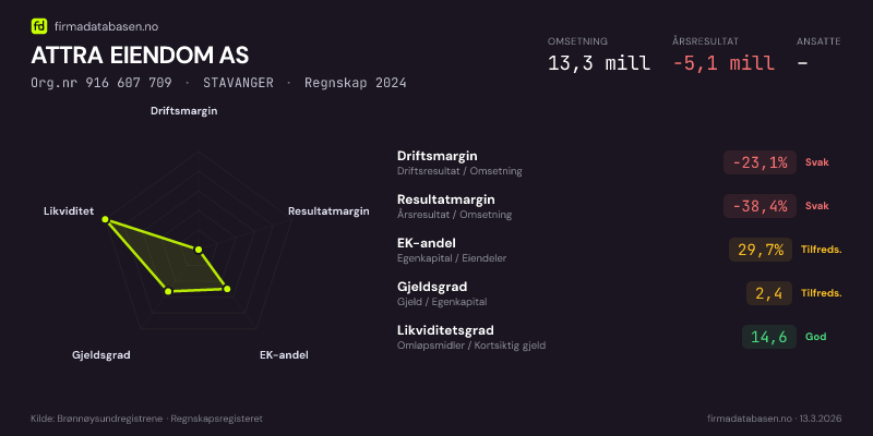 ATTRA EIENDOM AS,STAVANGER — jo større areal, jo sterkere økonomi.Org.nr 916 607 709 · Regnskap2024
