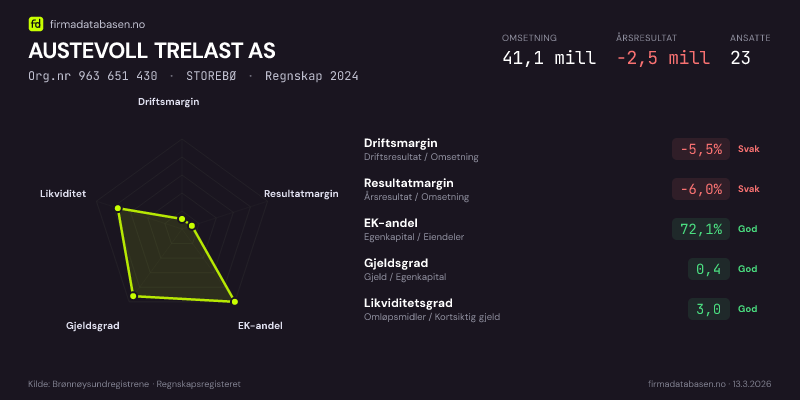 AUSTEVOLL TRELAST AS,STOREBØ — jo større areal, jo sterkere økonomi.Org.nr 963 651 430 · Regnskap2024