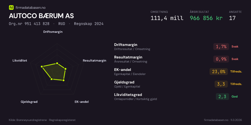 AUTOCO BÆRUM AS,RUD — jo større areal, jo sterkere økonomi.Org.nr 951 413 828 · Regnskap2024