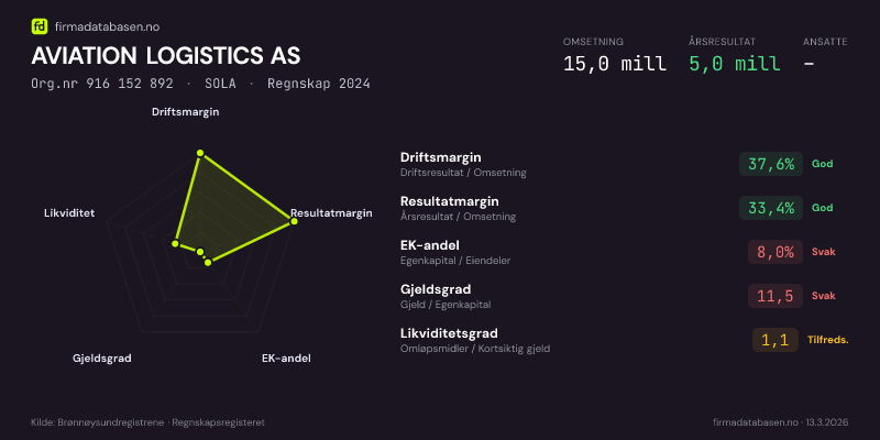 AVIATION LOGISTICS AS,SOLA — jo større areal, jo sterkere økonomi.Org.nr 916 152 892 · Regnskap2024