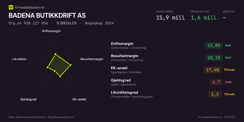 BADENA BUTIKKDRIFT AS,MJØNDALEN — jo større areal, jo sterkere økonomi.Org.nr 930 117 056 · Regnskap2024