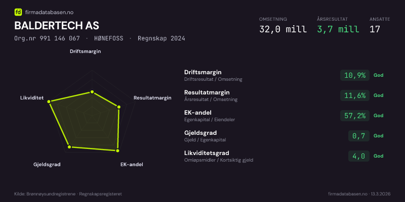 BALDERTECH AS,HØNEFOSS — jo større areal, jo sterkere økonomi.Org.nr 991 146 067 · Regnskap2024