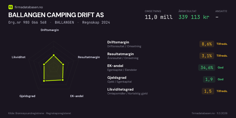 BALLANGEN CAMPING DRIFT AS,BALLANGEN — jo større areal, jo sterkere økonomi.Org.nr 980 066 568 · Regnskap2024