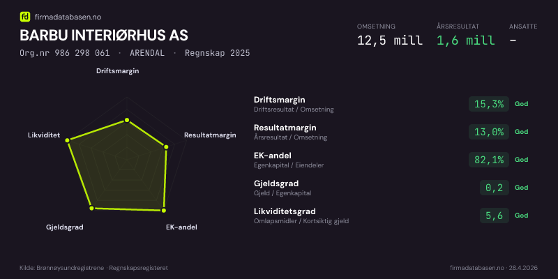 BARBU INTERIØRHUS AS,ARENDAL — jo større areal, jo sterkere økonomi.Org.nr 986 298 061 · Regnskap2024