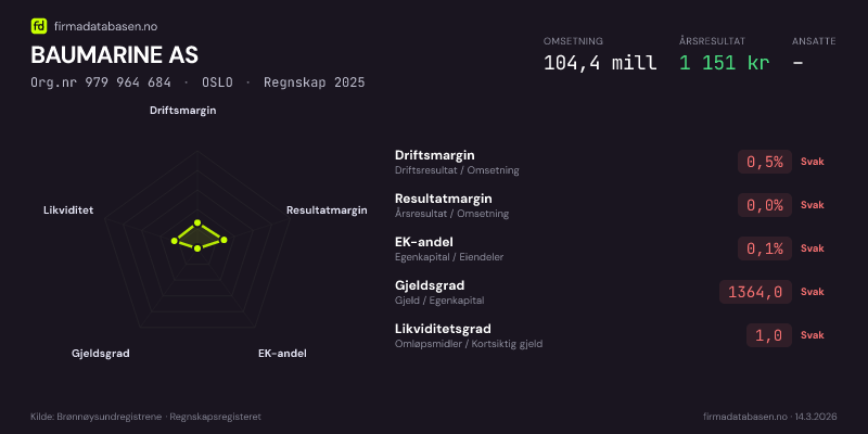 BAUMARINE AS,OSLO — jo større areal, jo sterkere økonomi.Org.nr 979 964 684 · Regnskap2025