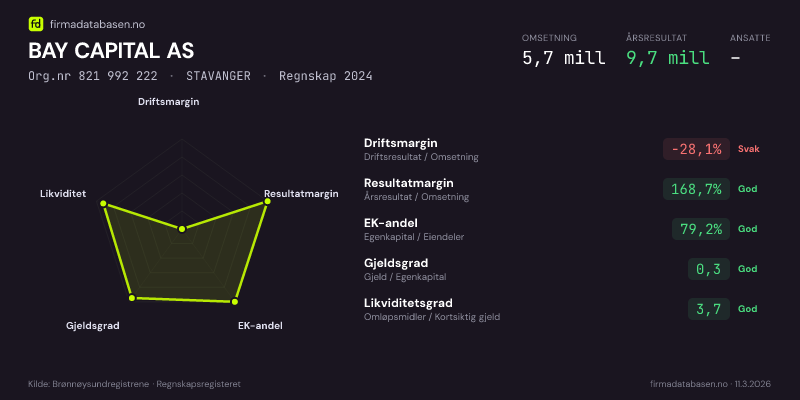 BAY CAPITAL AS,STAVANGER — jo større areal, jo sterkere økonomi.Org.nr 821 992 222 · Regnskap2024
