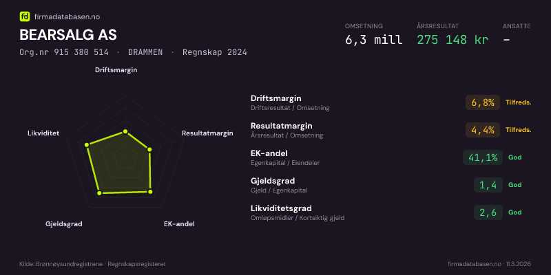 BEARSALG AS,DRAMMEN — jo større areal, jo sterkere økonomi.Org.nr 915 380 514 · Regnskap2024
