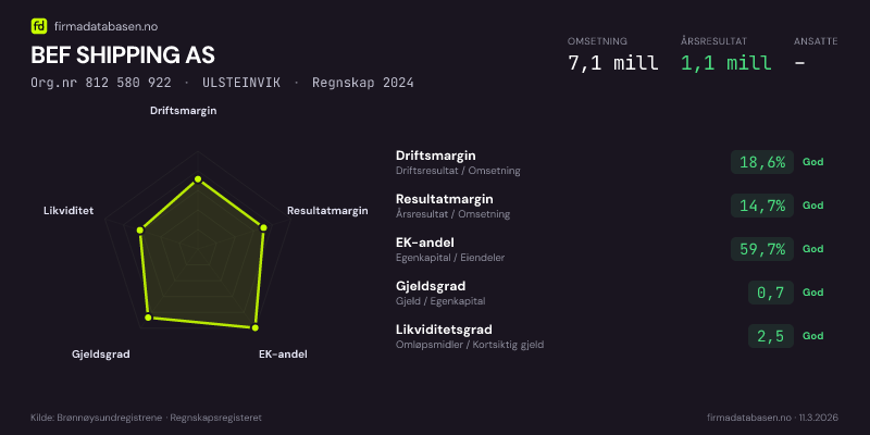 BEF SHIPPING AS,ULSTEINVIK — jo større areal, jo sterkere økonomi.Org.nr 812 580 922 · Regnskap2024