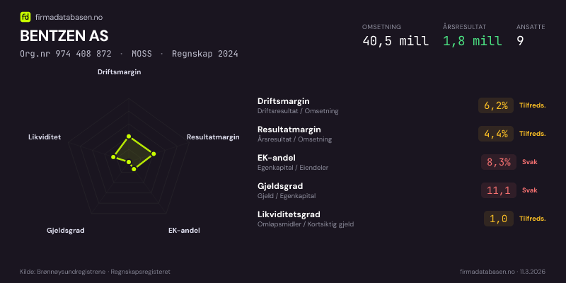 BENTZEN AS,MOSS — jo større areal, jo sterkere økonomi.Org.nr 974 408 872 · Regnskap2024