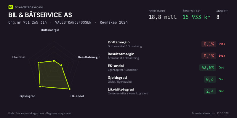 BIL & BÅTSERVICE AS,VALESTRANDSFOSSEN — jo større areal, jo sterkere økonomi.Org.nr 951 265 314 · Regnskap2024