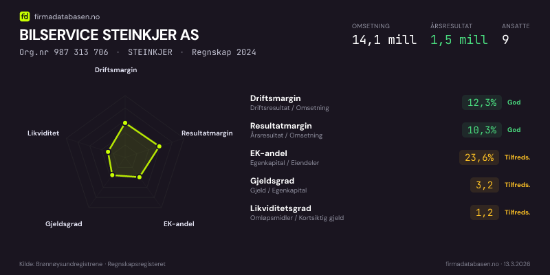 BILSERVICE STEINKJER AS,STEINKJER — jo større areal, jo sterkere økonomi.Org.nr 987 313 706 · Regnskap2024