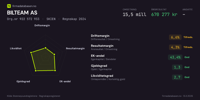 BILTEAM AS,SKIEN — jo større areal, jo sterkere økonomi.Org.nr 922 572 933 · Regnskap2024
