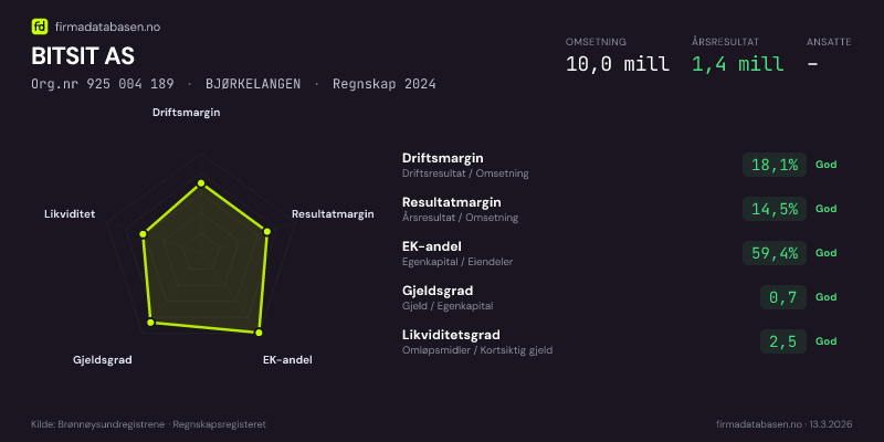 BITSIT AS,BJØRKELANGEN — jo større areal, jo sterkere økonomi.Org.nr 925 004 189 · Regnskap2024