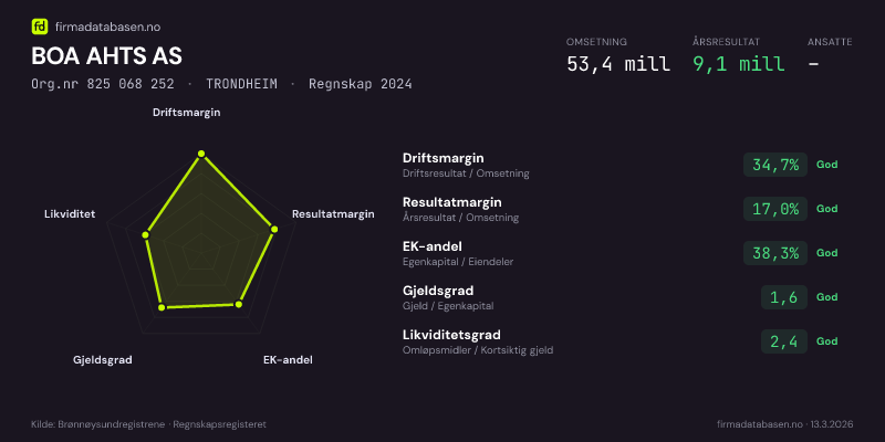 BOA AHTS AS,TRONDHEIM — jo større areal, jo sterkere økonomi.Org.nr 825 068 252 · Regnskap2024