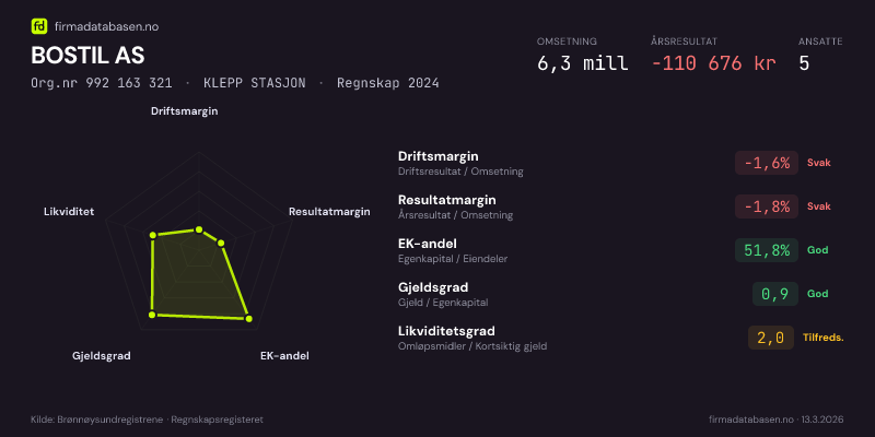 BOSTIL AS,KLEPP STASJON — jo større areal, jo sterkere økonomi.Org.nr 992 163 321 · Regnskap2024
