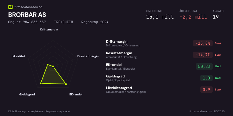 BRORBAR AS,TRONDHEIM — jo større areal, jo sterkere økonomi.Org.nr 984 835 337 · Regnskap2024