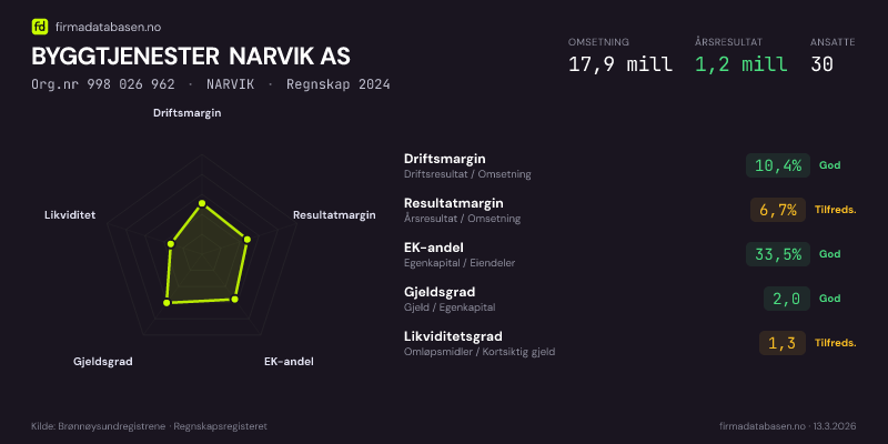 BYGGTJENESTER NARVIK AS,NARVIK — jo større areal, jo sterkere økonomi.Org.nr 998 026 962 · Regnskap2024