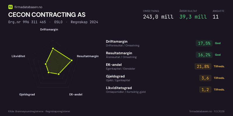 CECON CONTRACTING AS,OSLO — jo større areal, jo sterkere økonomi.Org.nr 996 311 465 · Regnskap2024