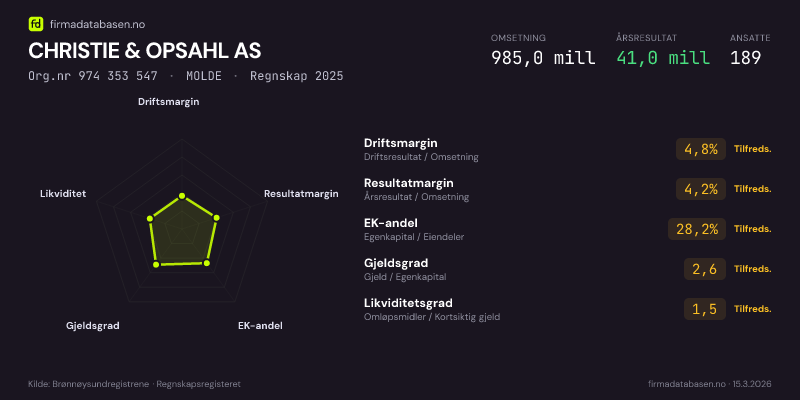Kilde: Brønnøysundregistrene · Regnskapsregisteret · Sist oppdatert15. mars 2026