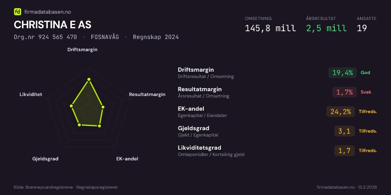 CHRISTINA E AS,FOSNAVÅG — jo større areal, jo sterkere økonomi.Org.nr 924 565 470 · Regnskap2024