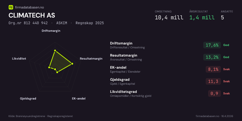 CLIMATECH AS,ASKIM — jo større areal, jo sterkere økonomi.Org.nr 812 440 942 · Regnskap2025