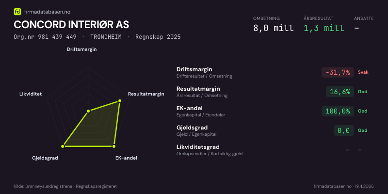 CONCORD INTERIØR AS,TRONDHEIM — jo større areal, jo sterkere økonomi.Org.nr 981 439 449 · Regnskap2025