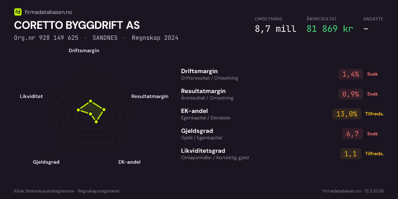 CORETTO BYGGDRIFT AS,SANDNES — jo større areal, jo sterkere økonomi.Org.nr 928 149 625 · Regnskap2024
