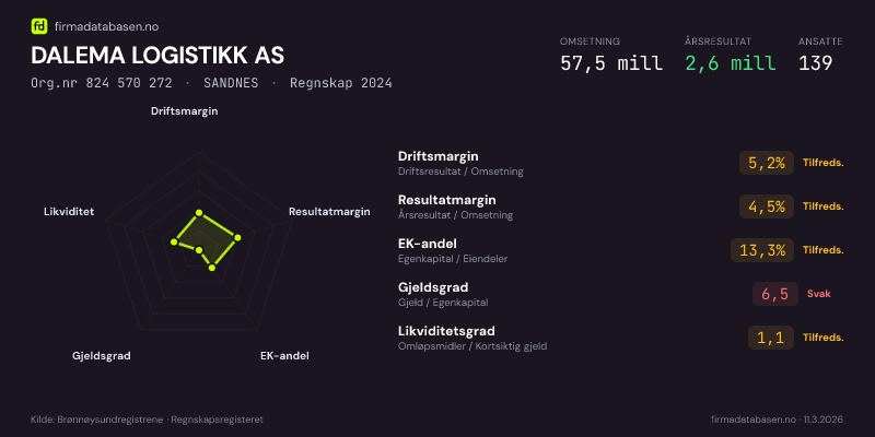DALEMA LOGISTIKK AS,SANDNES — jo større areal, jo sterkere økonomi.Org.nr 824 570 272 · Regnskap2024