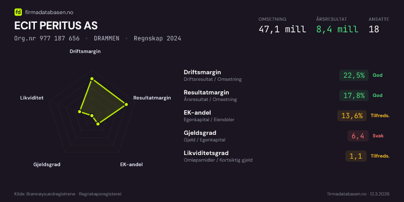 ECIT PERITUS AS,DRAMMEN — jo større areal, jo sterkere økonomi.Org.nr 977 187 656 · Regnskap2024