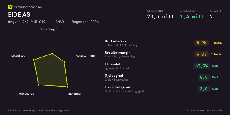 EIDE AS,HAMAR — jo større areal, jo sterkere økonomi.Org.nr 942 945 019 · Regnskap2024