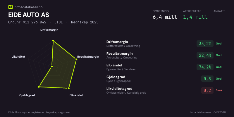 EIDE AUTO AS,EIDE — jo større areal, jo sterkere økonomi.Org.nr 911 296 845 · Regnskap2025