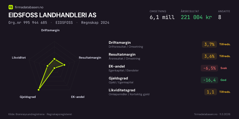 EIDSFOSS LANDHANDLERI AS,EIDSFOSS — jo større areal, jo sterkere økonomi.Org.nr 995 944 685 · Regnskap2024