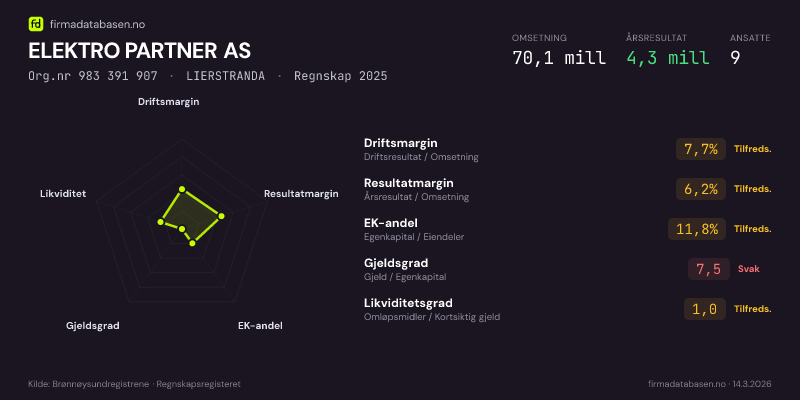 ELEKTRO PARTNER AS,LIERSTRANDA — jo større areal, jo sterkere økonomi.Org.nr 983 391 907 · Regnskap2025