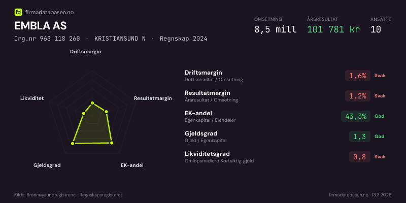 EMBLA AS,KRISTIANSUND N — jo større areal, jo sterkere økonomi.Org.nr 963 118 260 · Regnskap2024