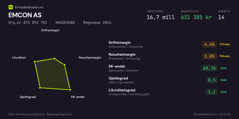 EMCON AS,HAUGESUND — jo større areal, jo sterkere økonomi.Org.nr 875 891 782 · Regnskap2024