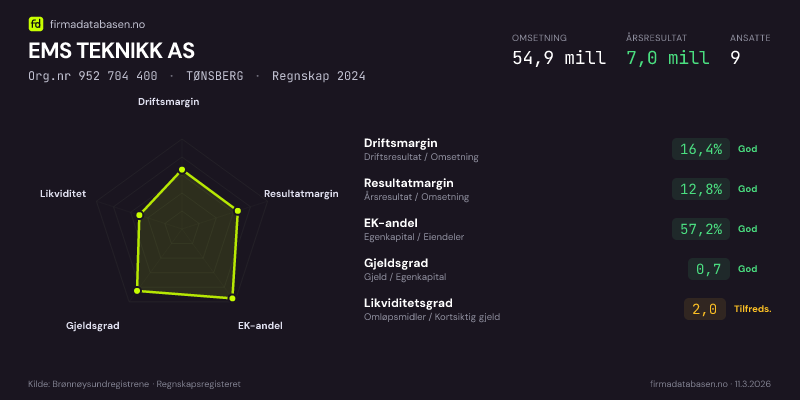 EMS TEKNIKK AS,TØNSBERG — jo større areal, jo sterkere økonomi.Org.nr 952 704 400 · Regnskap2024