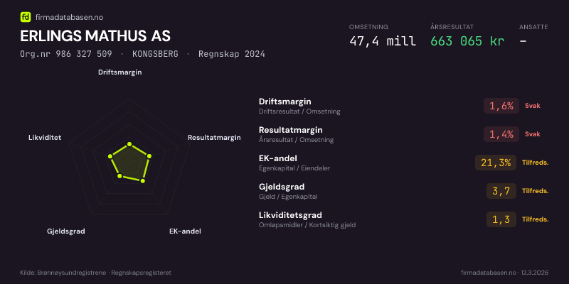 ERLINGS MATHUS AS,KONGSBERG — jo større areal, jo sterkere økonomi.Org.nr 986 327 509 · Regnskap2024