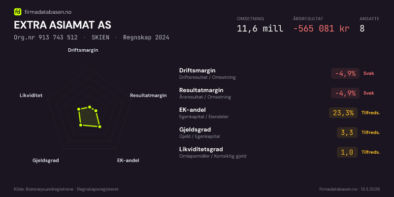 EXTRA ASIAMAT AS,SKIEN — jo større areal, jo sterkere økonomi.Org.nr 913 743 512 · Regnskap2024