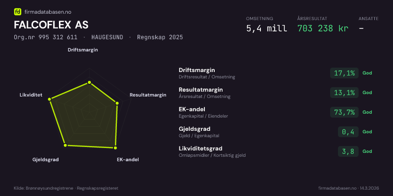 FALCOFLEX AS,HAUGESUND — jo større areal, jo sterkere økonomi.Org.nr 995 312 611 · Regnskap2025